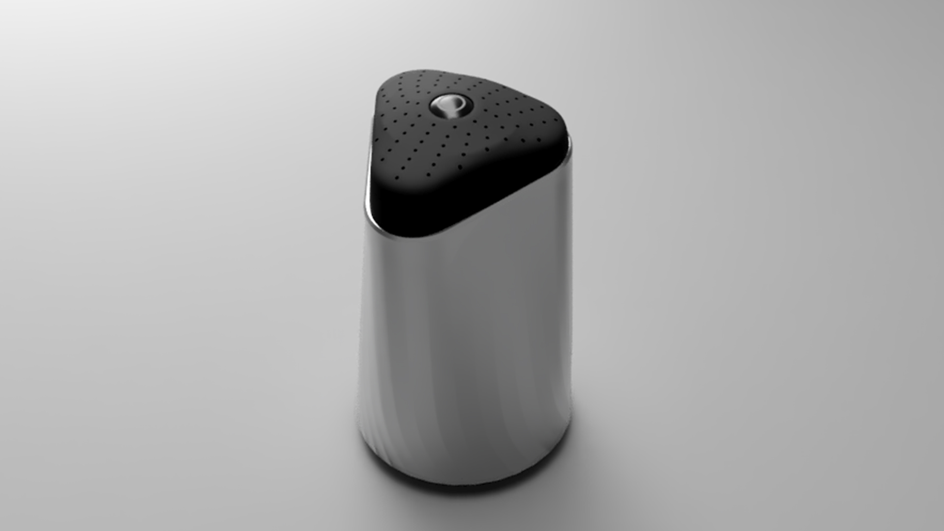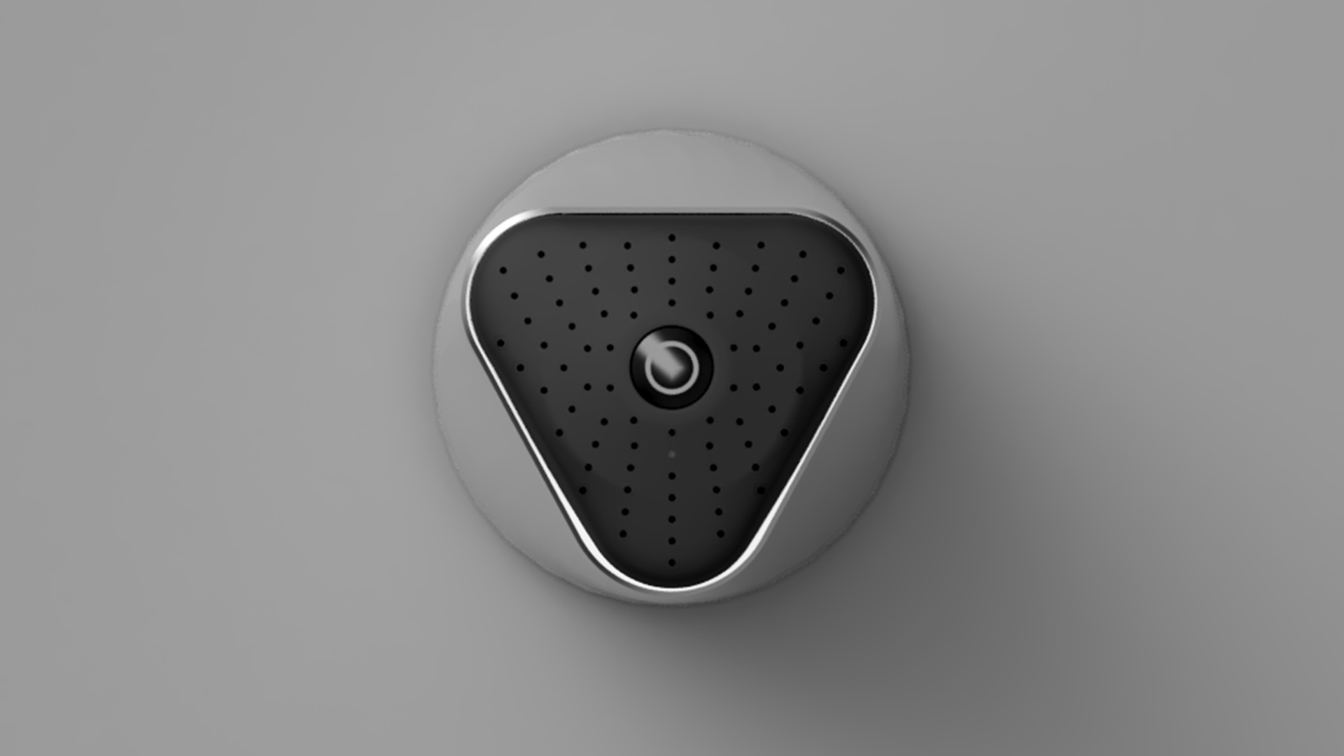 陰影によって、全方位から集まる情報を想起させるラインが繊細に浮かび上がるような形状を施しています。